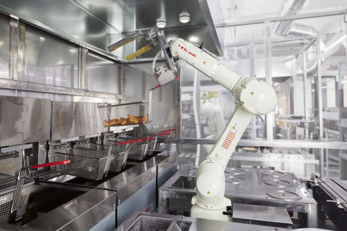 아웃나우의 로봇은 크게 ▲오븐 로봇(굽기) ▲프라잉 로봇(튀기기) ▲누들 로봇(면 삶기) ▲소테 로봇(볶기)로 구분되며, 현재까지 30개 이상의 외식 브랜드가 웨이브의 로봇을 도입한 것으로 알려졌다.