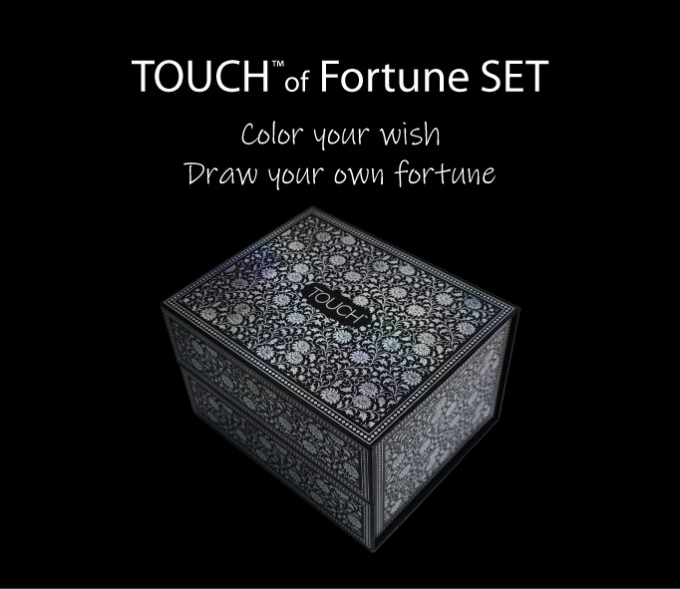구성품은 △미국 ACMI의 AP(비독성) 인증을 받은 터치 트윈 마카·브러시 마카 24색 △전통 길상 문양을 담은 길상화 컬러링 카드 14장 △채색 가이드로 활용되는 ‘터치 럭키 아트 카드’ 7종 △카드를 담을 수 있는 전용 봉투 14매 △전통 자개함에서 영감을 얻은 프리미엄 수납함으로 이뤄졌다.