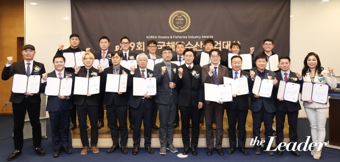 ▲2025 제9회 한국해양수산산업대상 시상식에서 수상자 및 내빈이 단체사진을 촬영하고 있다./사진=김창현 머니투데이 기자